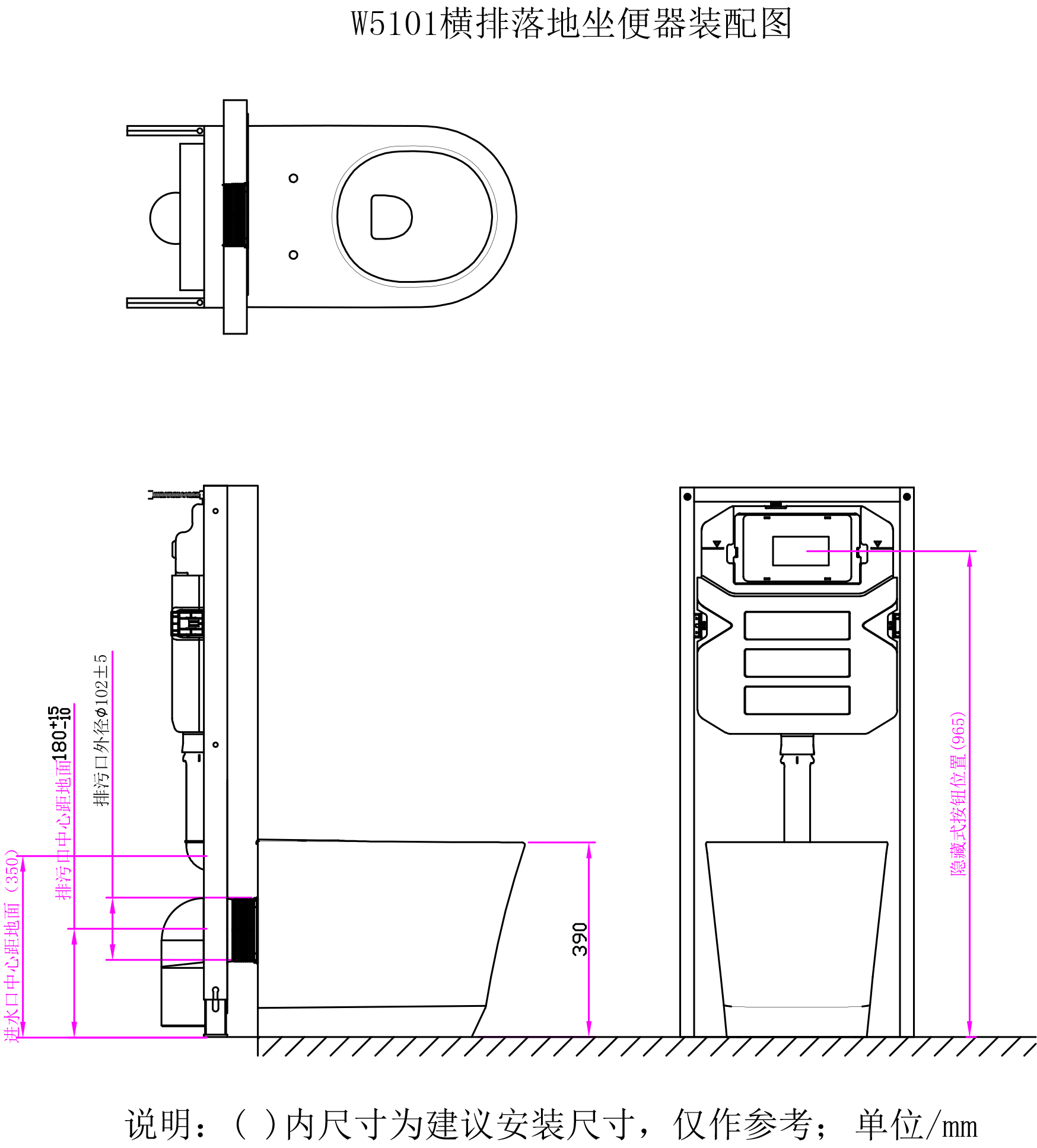排水方式:冲落式墙排(配入墙水箱D82405Q)