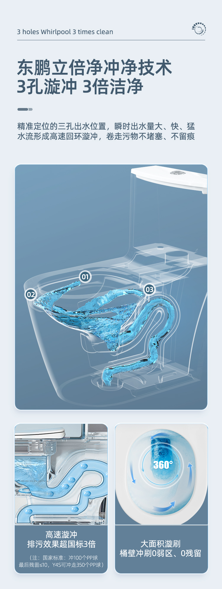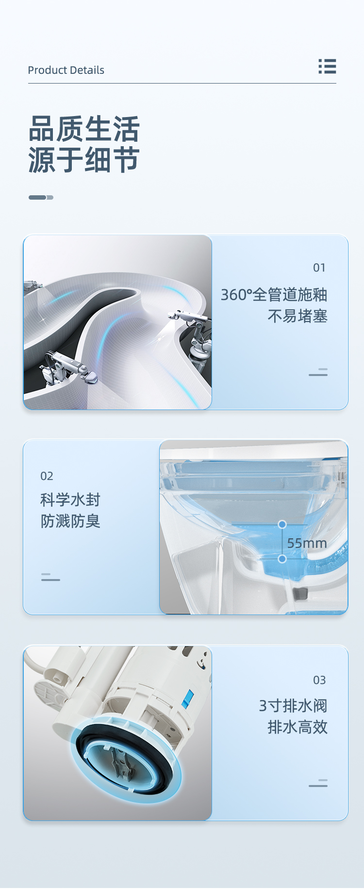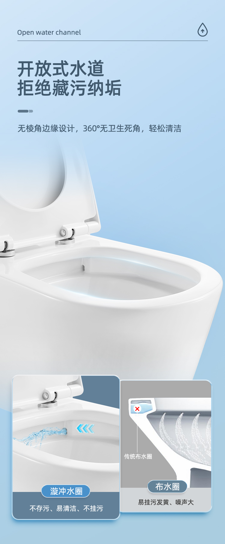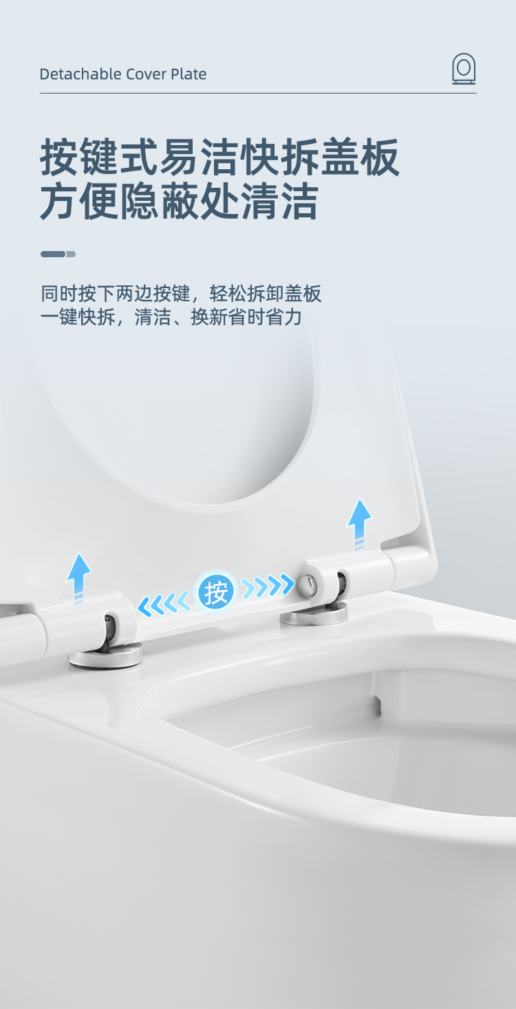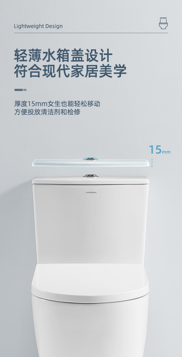 3、轻薄化设计,符合现代家居美学水箱盖厚度15mm,投放清洁剂和检修更轻松、方便