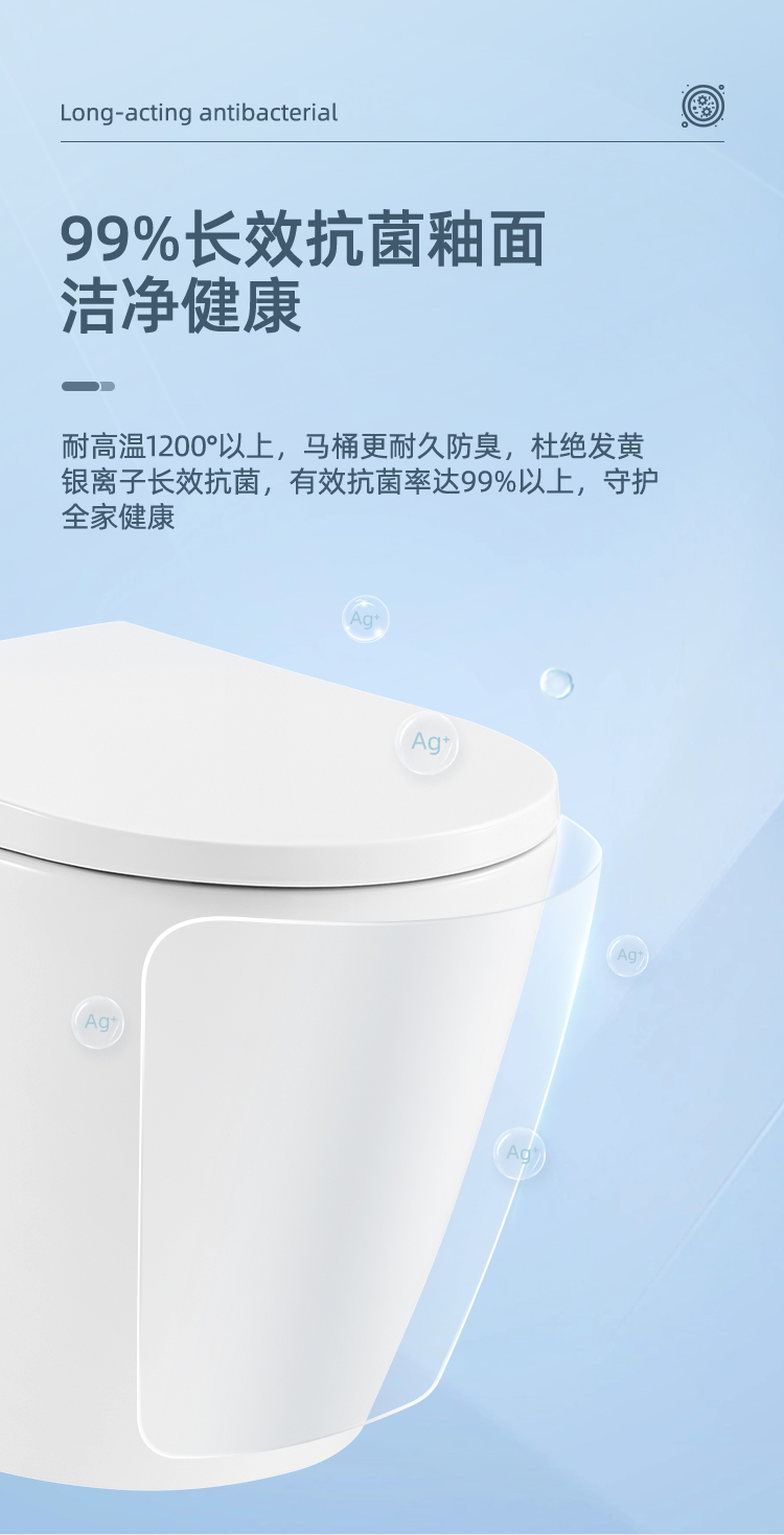 2、晶银釉面,可达99%的长效抗菌达到99%的长效抗菌釉面,为家庭健康保驾护航