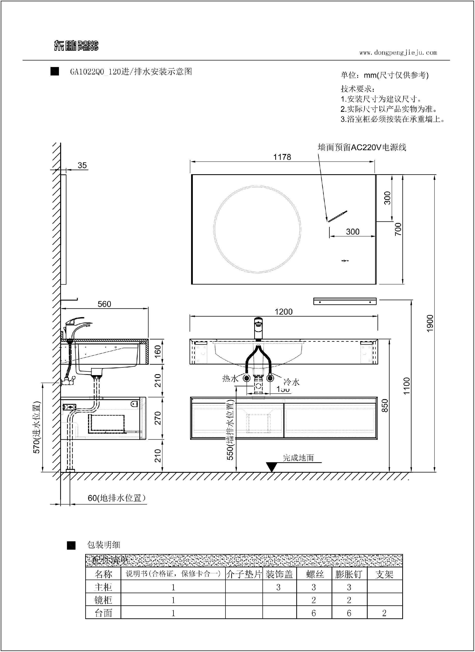 主柜 : GA1022B0_119 1195x545x270mm