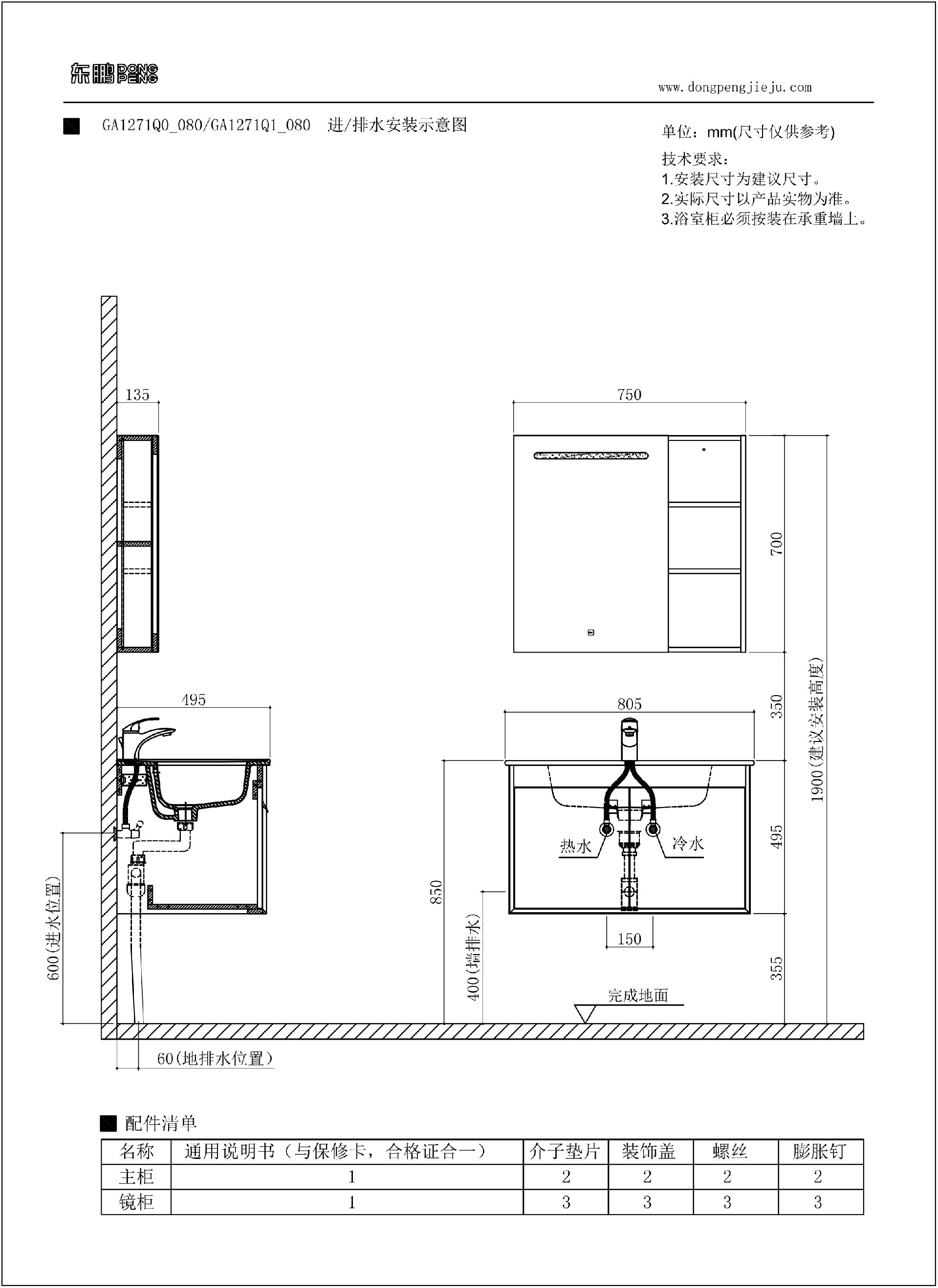 主柜+盆:GA1271Z2_078 805X495X480mm
