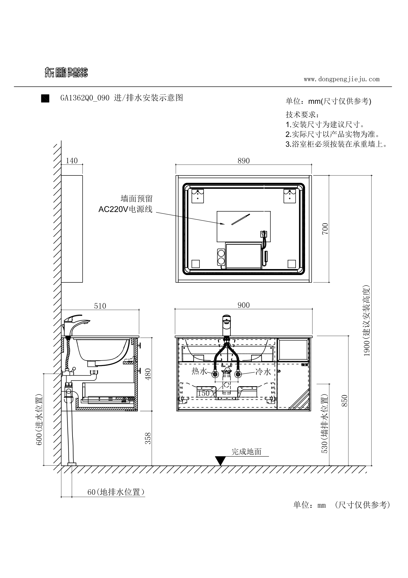 台面+陶瓷盆 GA1362T0_090 900x510x222mm