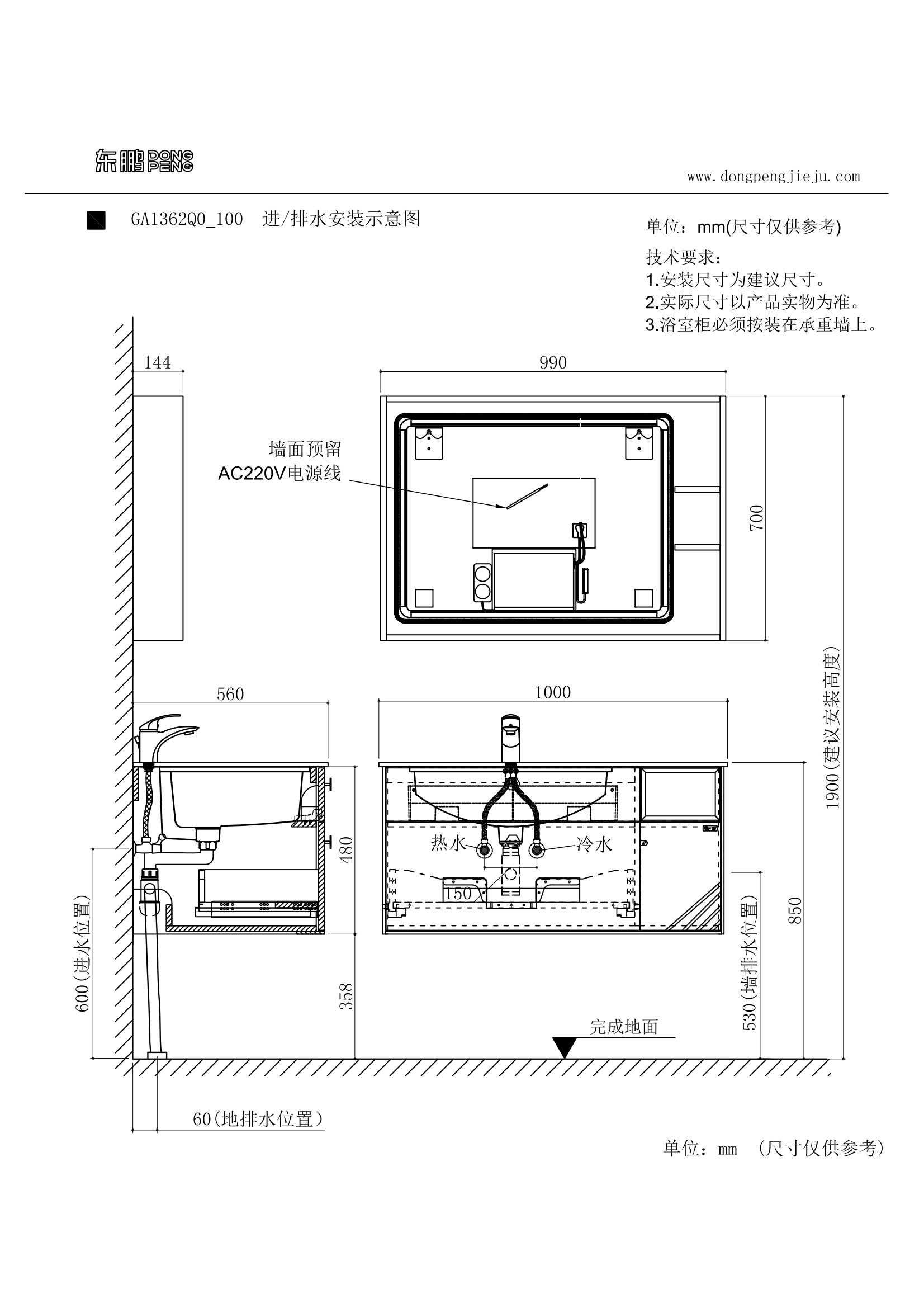 台面+陶瓷盆 GA1362T0_100 1000x560x222mm