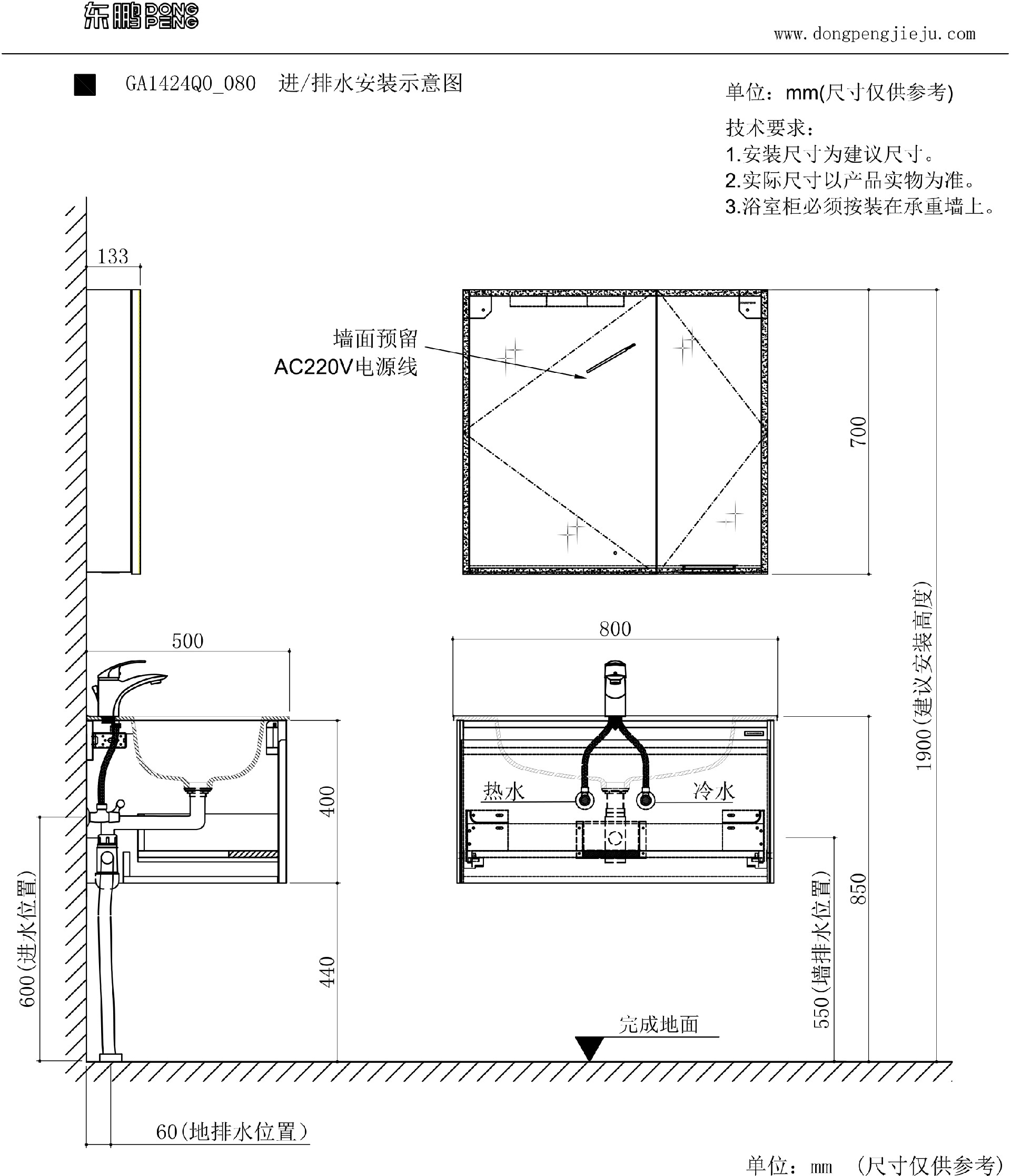 镜柜:GA1431C1_075 750*135*700mm