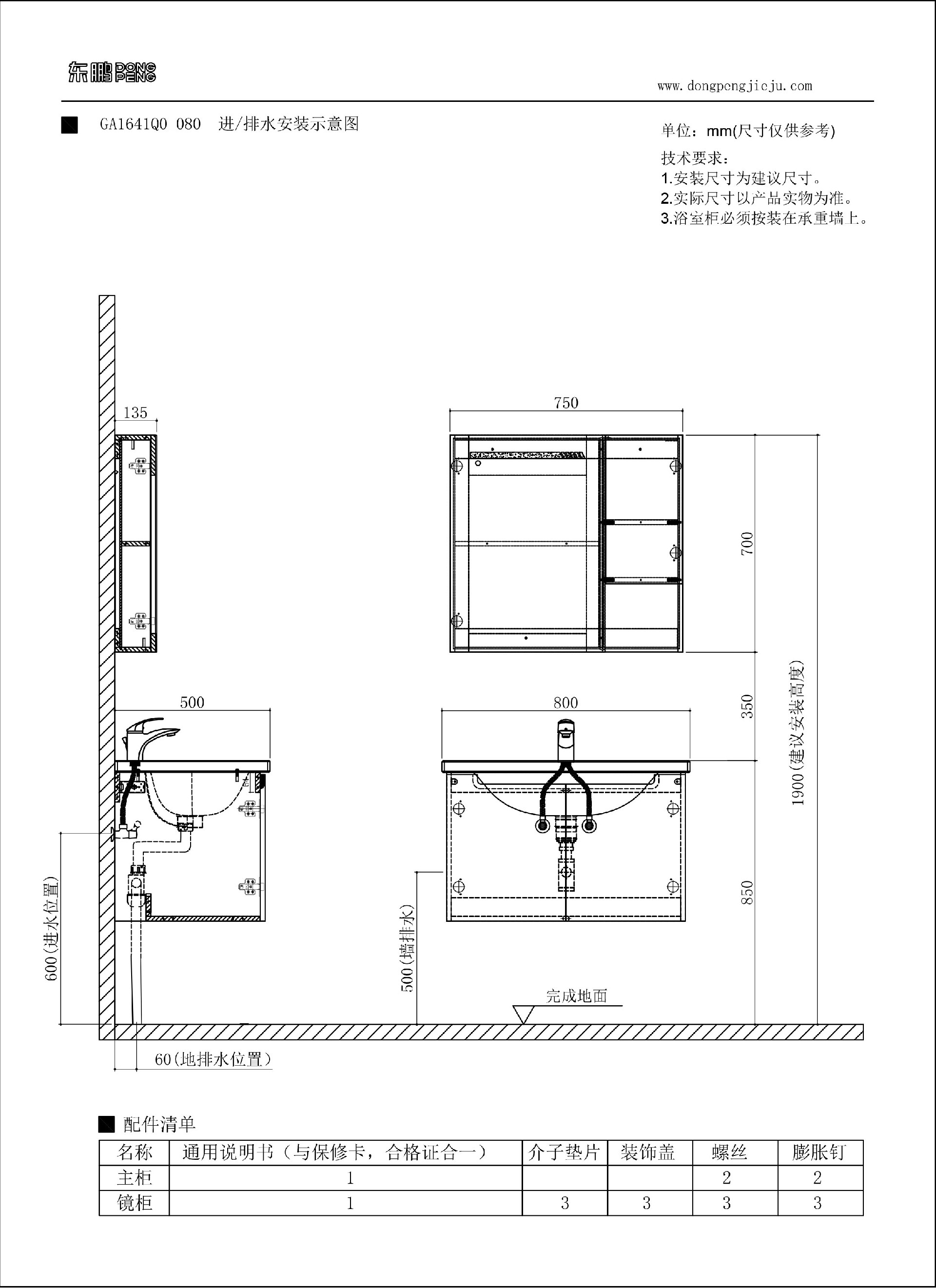 主柜+盆:GA1641Z0_080 800x500x518mm