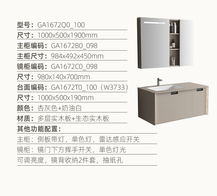 台面+台下盆 GA1672T0_080(W3733) 800x500x190mm