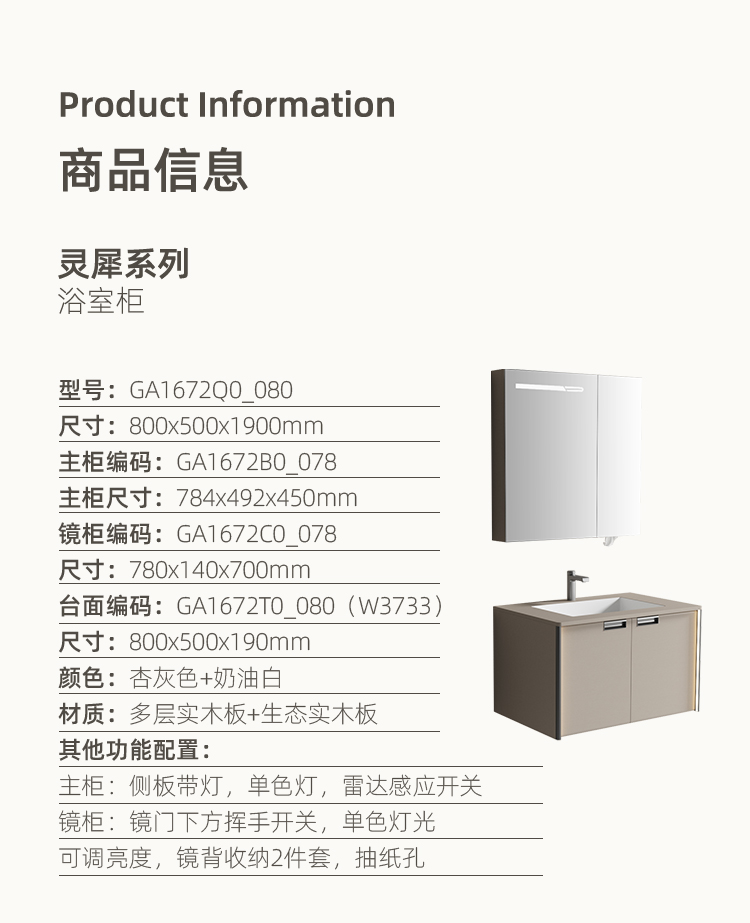 台面+台下盆 GA1672T0_080(W3733) 1000x500x190mm