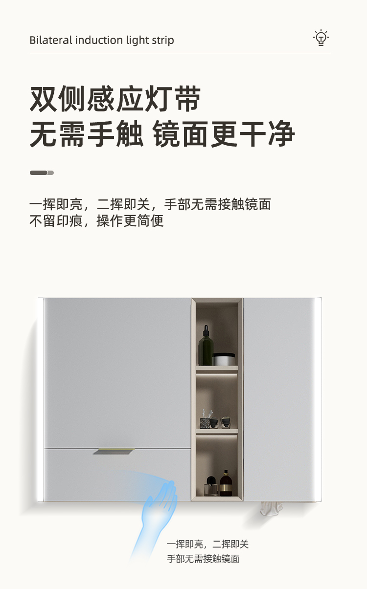 镜子:挥手开关,双色灯光,可调亮度,可调色温