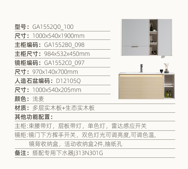 主柜:束腰带灯,单色灯,雷达感应开关