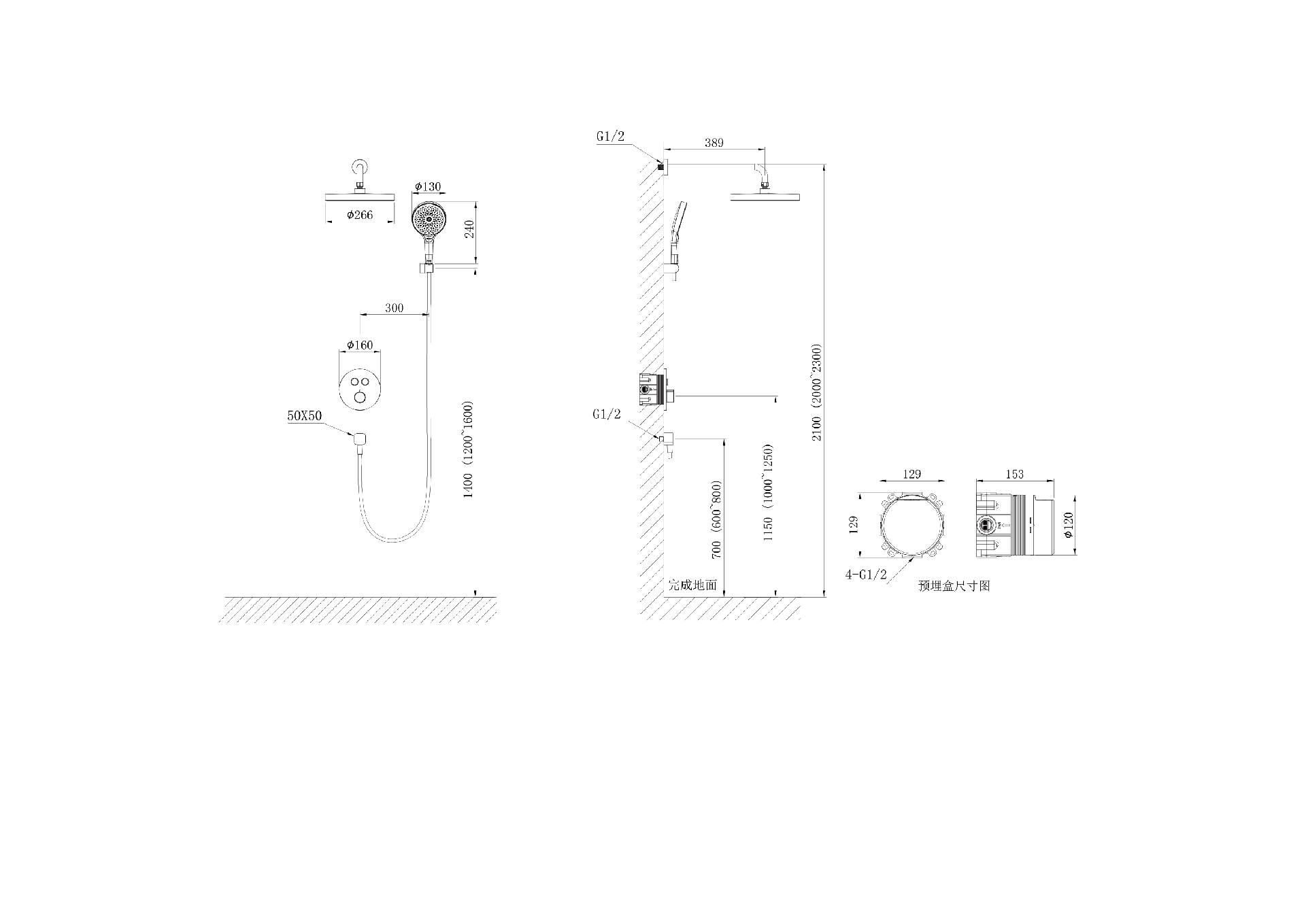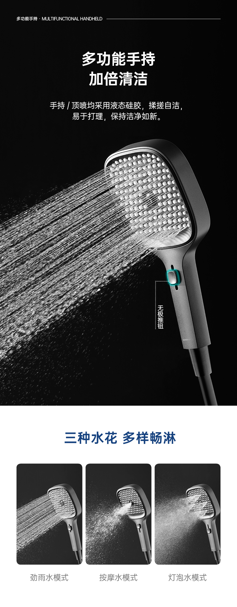 配置:圆形顶喷、三功能圆形手持、圆面板操控面板