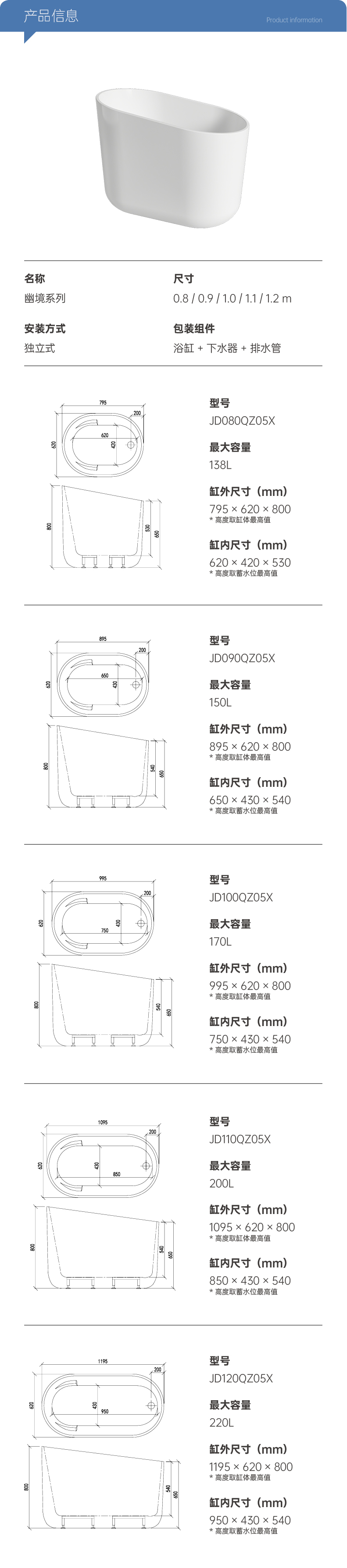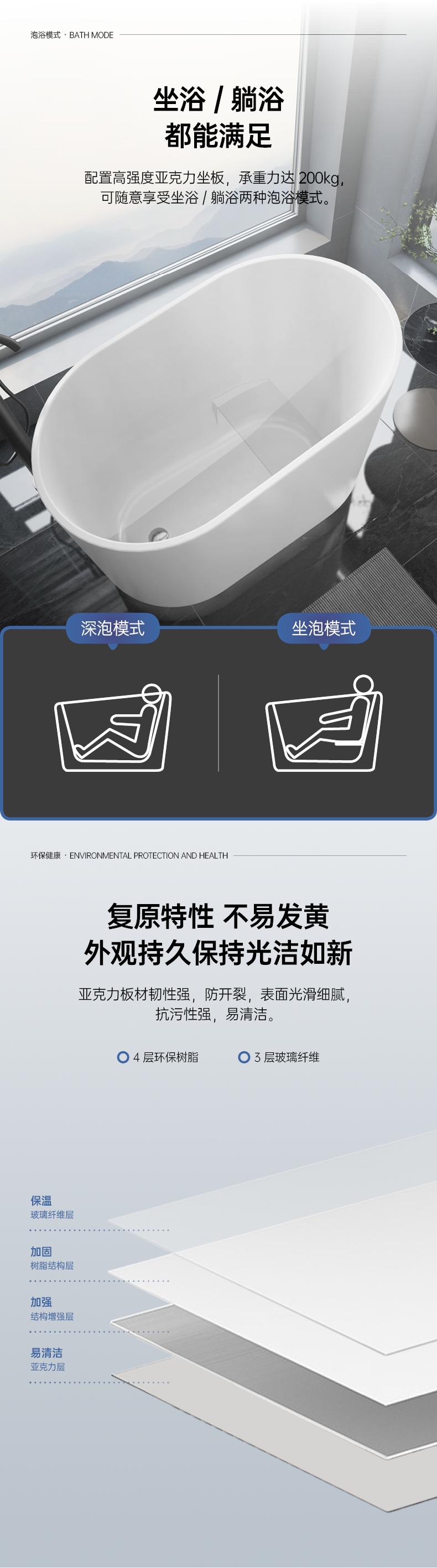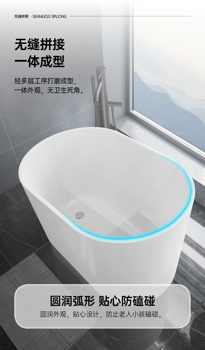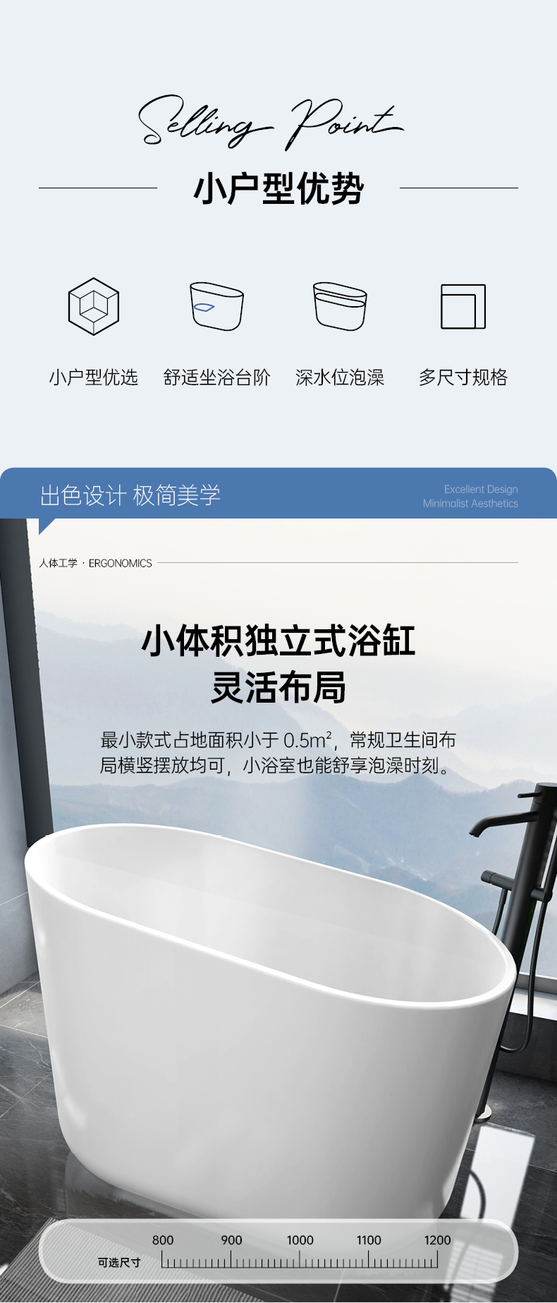 1、深泡MINI缸,内深540mm,小户型专用,最小占地<5㎡